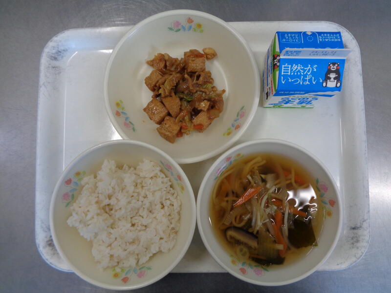 麦ご飯 牛乳 魚そうめん汁 厚揚げときゃべつのみそ炒め