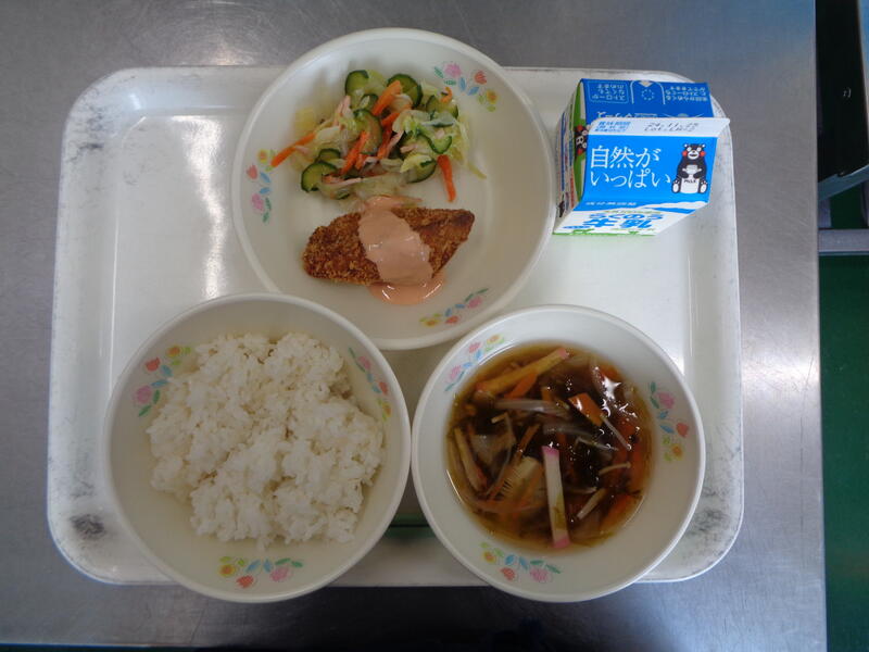 今日の「まぐろカツ」は山鹿市と宮古島の交流事業の一環として山鹿市からいただきました。
