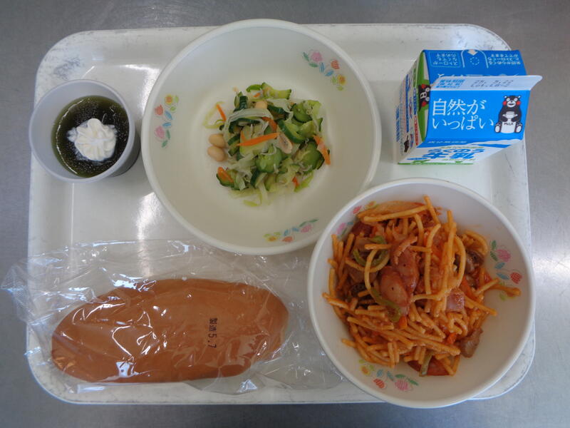 コッペパン 牛乳 ナポリタン じゃこ豆サラダ 抹茶ゼリー