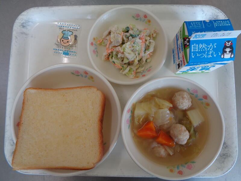 コッペパン 牛乳 春野菜のポトフ ミートボールの甘酢あん