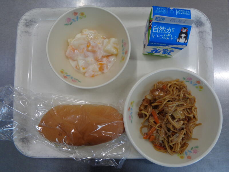 コッペパン 牛乳 焼きそば フルーツヨーグルト