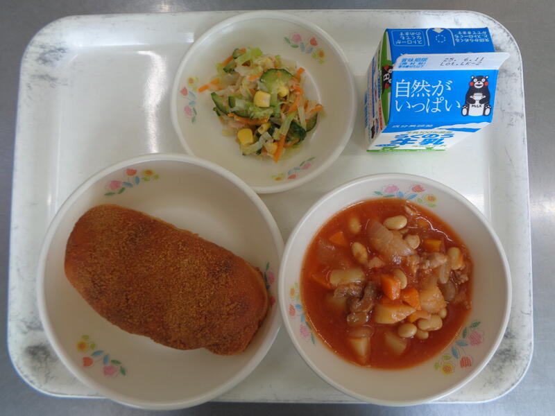 揚げパン 牛乳 チキンビーンズ ツナサラダ