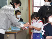 保健委員会による手洗い講座が行われています。丁寧な手洗いは、風邪などの感染予防にも役立ちます。