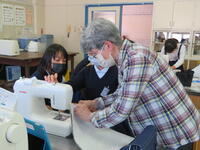 ミシンの指導に、婦人会の7名の皆さんがゲストティチャーで来校され、各班について教えてくださいました。