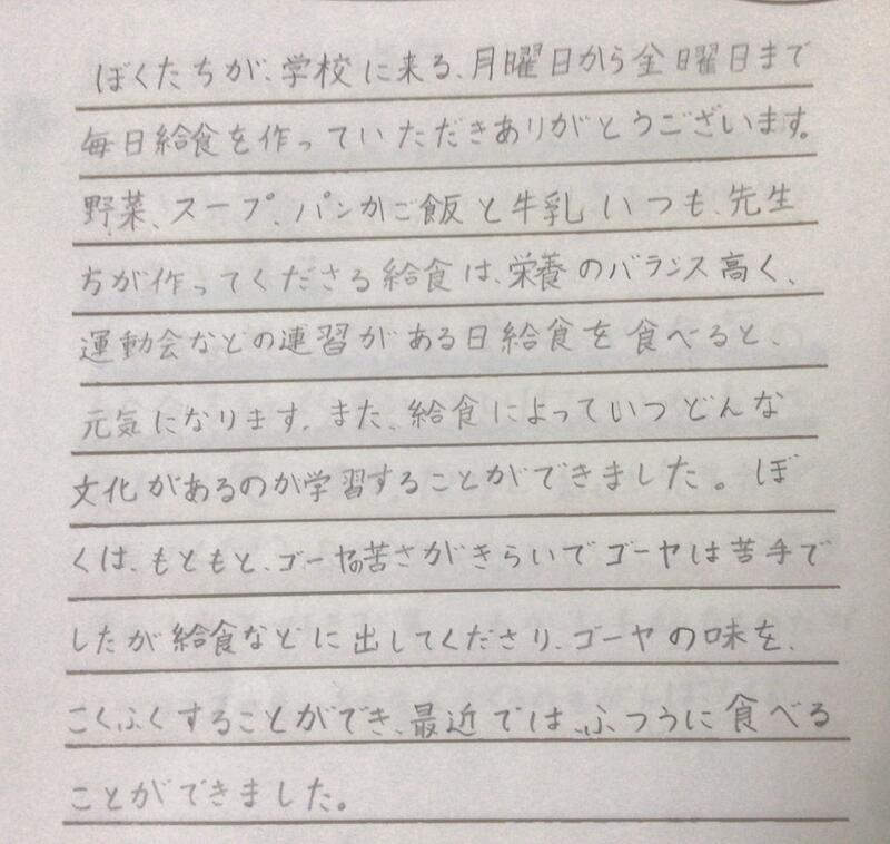 1月23日~30日までの校内給食週間で給食の先生方へ感謝の手紙を書き、贈りました。