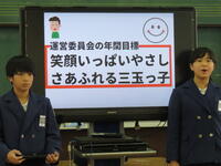 今年度の児童会スローガン「笑顔いっぱい、やさしさあふれる三玉っ子」を目指して、この1年間、各委員会が一生懸命に活動してきました。その成果や改善点(来年度につないでいくもの)を確認し合いました。