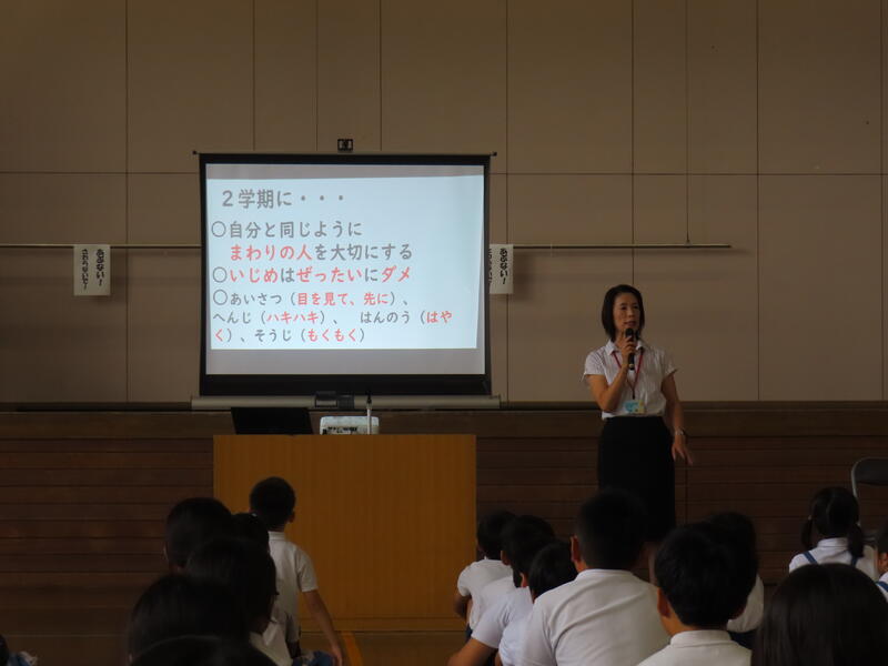 7月18日(金)に終業式がありました。各学年代表の作文発表(1・3・5年、すまいる学級)では、1学期に頑張りたいことや心に残ったこと、2学期の目標などを堂々と発表してくれました。校長先生からの話では、子どもたちの1年間の姿を褒められました。さらに、1学期を振り返りながら、「よりよく成長できるよう心を鍛える夏にしましょう。」という話がありました。また、生徒指導担当からの話では夏休みを安全に過ごすためのきまり、保健担当からの話では健康に過ごせるために規則正しい生活について話がありました。