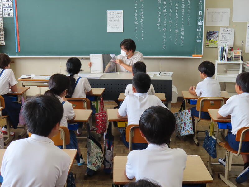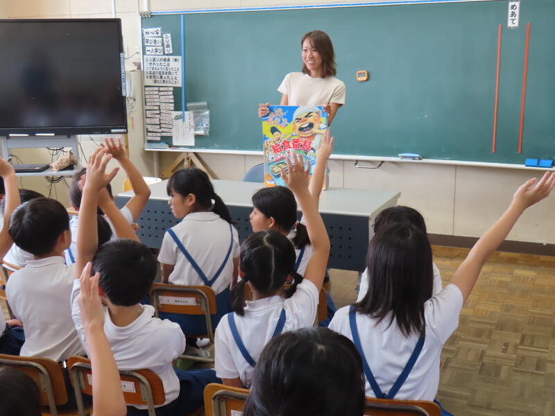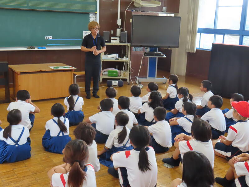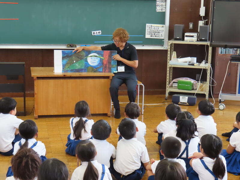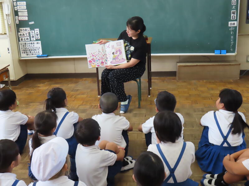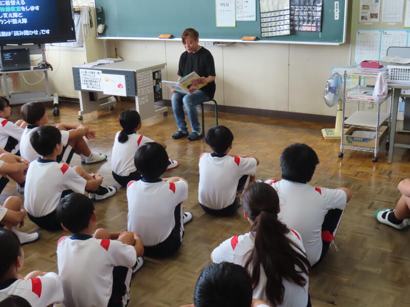 9月8日(月)の朝の時間は全校読書でした。その中で、1・2年生は、ALTのデニス先生による英語の絵本(はらぺこあおむし)の読み聞かせがありました。どの子も英語でのお話の世界に親しんでいる姿が印象的でした。今後も様々な物語に親しんでほしいです。