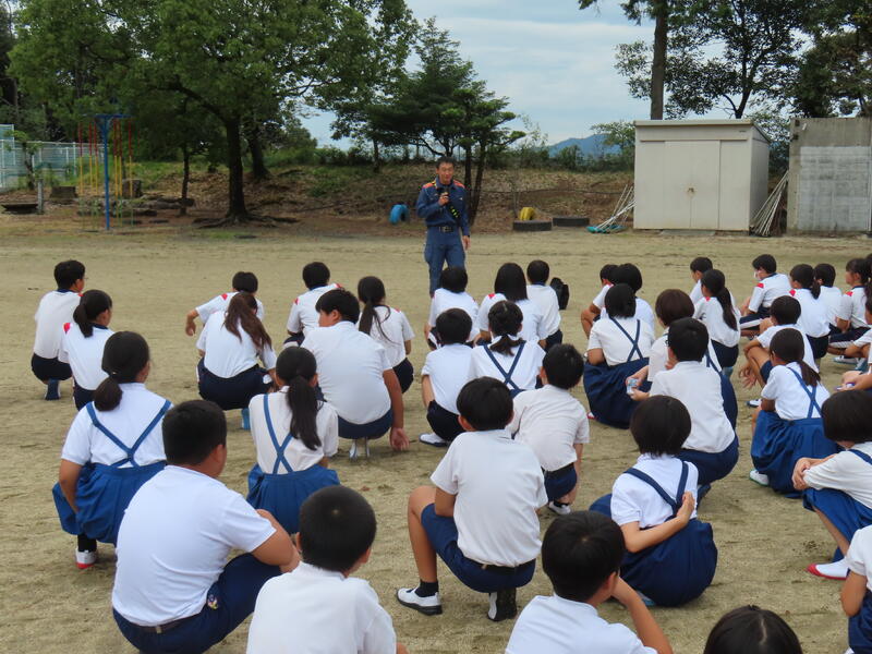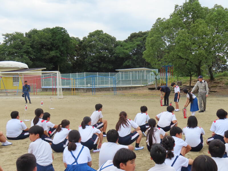 9月11日(木)に火災の避難訓練を行いました。今回は給食室から火災が発生したという設定で、どの学年も真剣に訓練に臨むことができました。また、山鹿消防署の方に訓練の様子を見ていただきました。山鹿消防署の方から、山鹿市では1年間に約30件もの火災が発生していることを教えていただくと、子どもたちはとても驚いていました。また、5・6年生と職員の計3名による水消火器の使用訓練も行いました。これからも防災の意識を高めていきます。