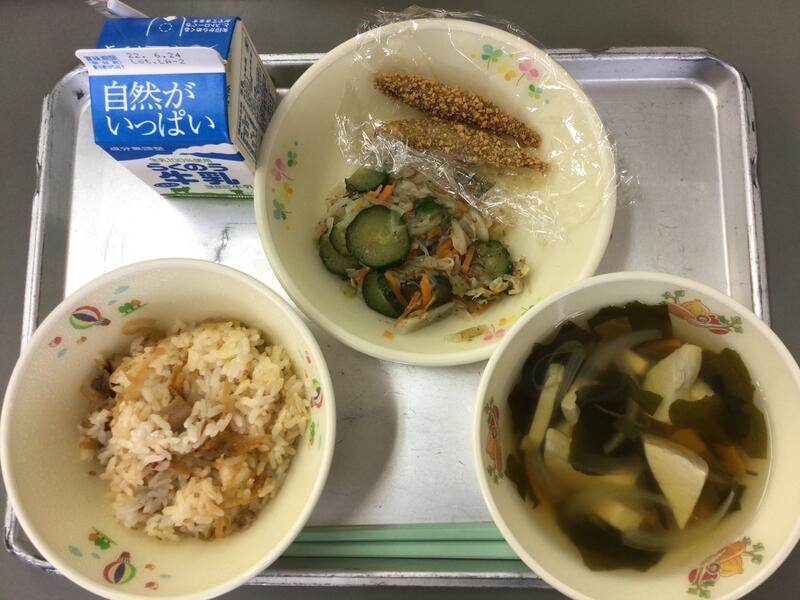 ししゃもは、カルシウムが多くて、さらにカルシウムの吸収を助けるビタミンD、若返りビタミンといわれるビタミンEが含まれています。ししゃもは、「柳の葉の魚」を意味するアイヌ語のスス・ハムから由来し、漢字で「柳 葉 魚」と書きます。この由来には色々な言い伝えがあり、その中でも「アイヌの神様が飢饉に苦しむ川下の人々を救うため、柳の葉を魚に変えた」という説があるそうです。今日のみかんは、保護者の方からいただきました。三玉は不動岩の近くにみかんの木がたくさんあって日当たりもよくおいしいみかんが採れます。保護者の方に感謝して食べましょう!