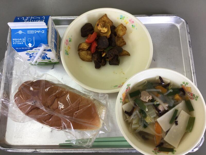 レバーのカレーあげ ワンタンスープ ミルクパン