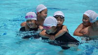 9日(木)は、プール開きでした。2校時に3・4年生、3校時に1・6年生、4校時に2・5年生の合同で行いました。