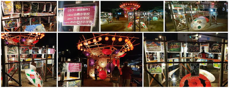 2月2日~24日の金・土曜日(夕刻から)に、山鹿市の豊前街道で「山鹿灯籠浪漫・百華百彩」が開催されています。さくら湯から八千代座の豊前街道(湯の端公園)に、今年も6年生の版画作品(色が見事。版画が投影されます)が展示されています。これは、読み聞かせ等でお世話になっている地域の森田さん平井さんの指導を受けて、毎年制作・展示している作品です。是非、ご覧ください。素晴らしい作品です。
