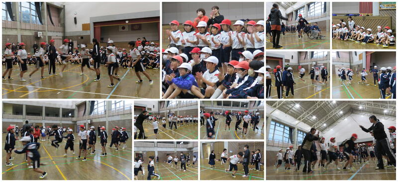 山鹿市内の6年生が山鹿市総合体育館に集まり、ハンドボールを通じて親善を深めました。