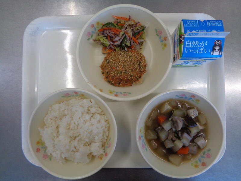 麦ご飯 牛乳 のっぺい汁 松風焼き ゆかり和え