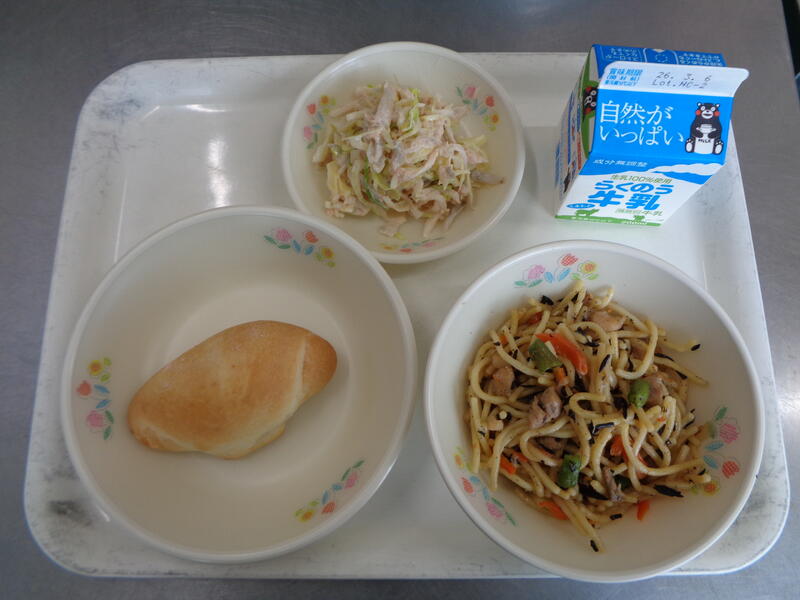 手作り塩パン 牛乳 ひじきスパゲッティ オーロラサラダ