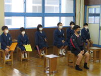 学年代表の皆さんの発表、校長先生のお話、転入生の紹介がありました。