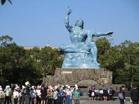 1日目は、城山小学校に11時2分に到着し、平和の鐘を聞くことができました。それから、平和公園を始め市内をガイドさん方と一緒に周り、平和学習をしました。