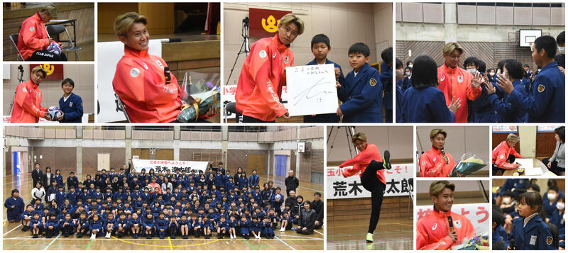 12月16日、サッカーU-23日本代表の荒木遼太郎選手をお迎えして、本校児童との交流会を行いました。子ども達は大喜びする一方、真剣な眼差しで荒木選手の話を聞いていました。