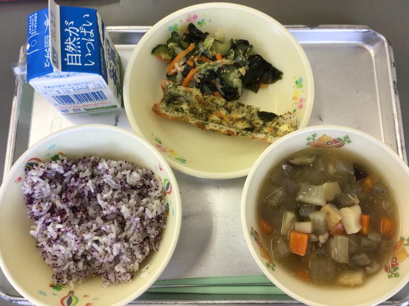今日の魚の味噌マヨネーズ焼きは、米みそとマヨネーズ、お酒・玉ねぎのみじん切り・パセリを混ぜ、魚にのせて、オーブンで焼きました。簡単な魚料理ですね!お家の人とチャレンジしてみましょう!