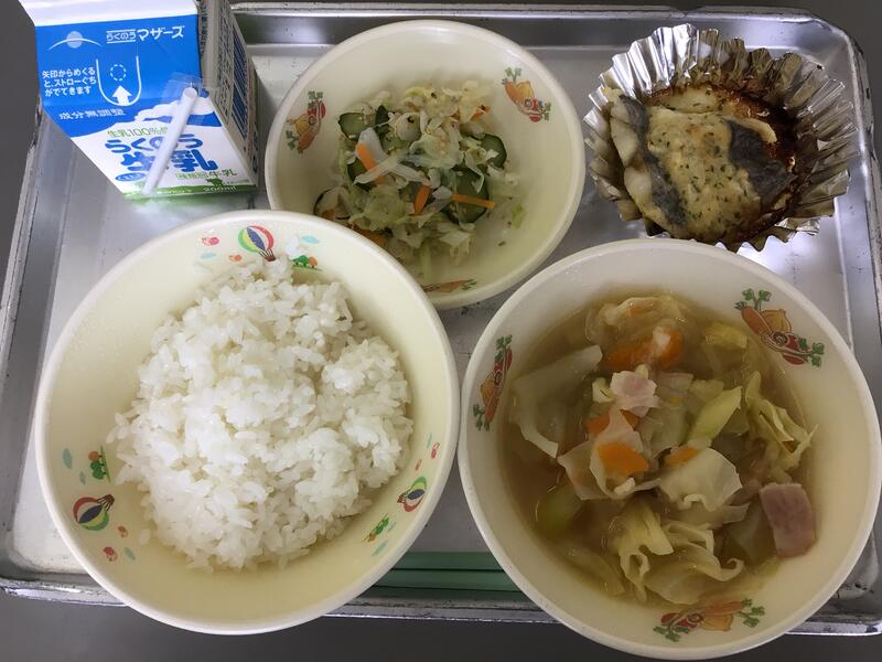 はるやさいのスープ さかなのみそマヨネーズやき やさいのあまずあえ