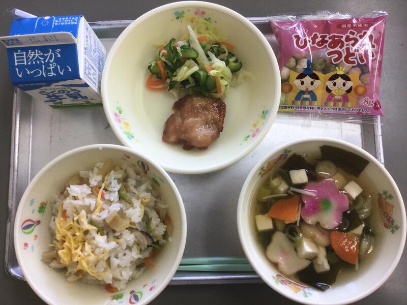 ちらしずし   てりやきチキン   はなふじる   なのはなあえ ひなあられ