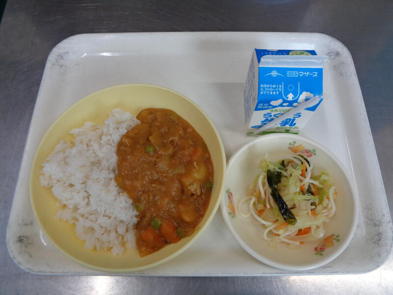 麦ご飯 牛乳 チキンカレー らっきょうサラダ