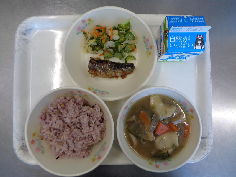 雑穀ご飯 牛乳 米粉入りだんご汁 白菜の甘酢和え