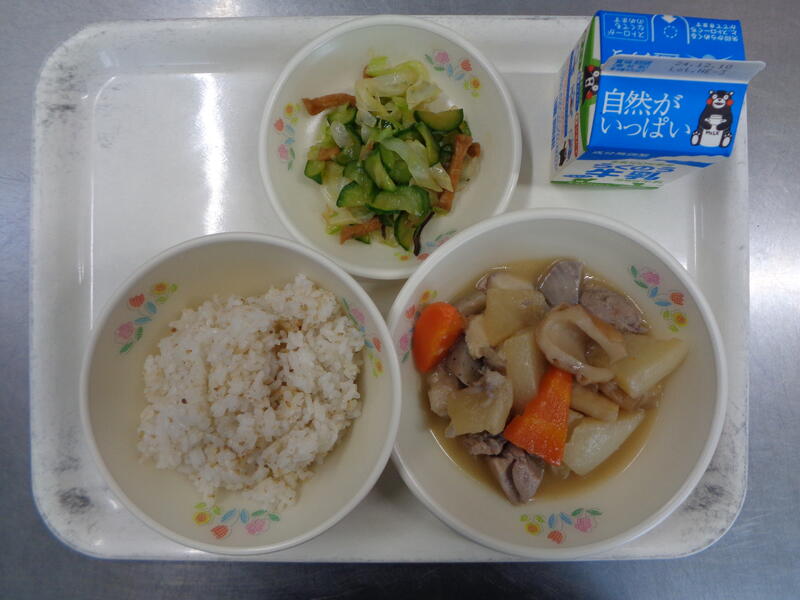 びりん飯 牛乳 白玉汁 れんこんサラダ
