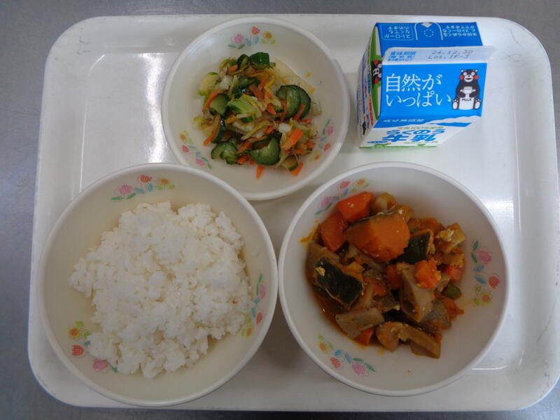 ご飯 牛乳 かぼちゃのうま煮 ゆず和え