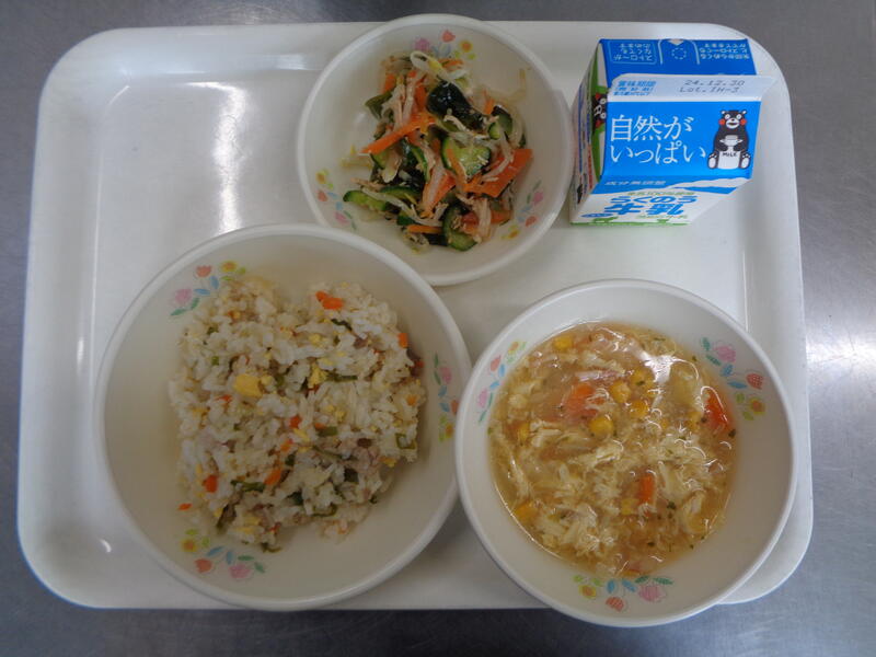 チャーハン 牛乳 スーミータン 鶏ささみの中華サラダ