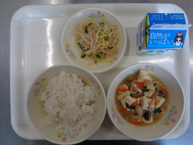 麦ご飯 牛乳 豆腐の中華煮 バンサンスー