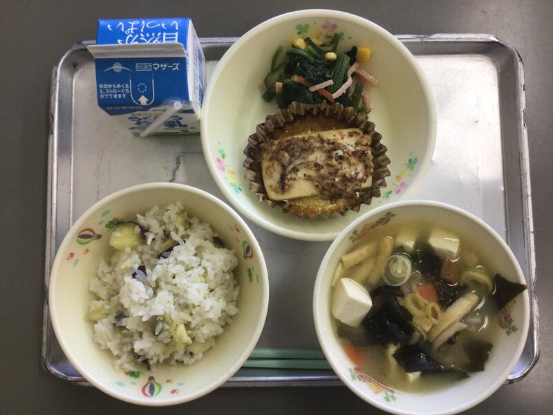 さつまいもごはん だいこんのみそしる とうふのマヨネーズやき