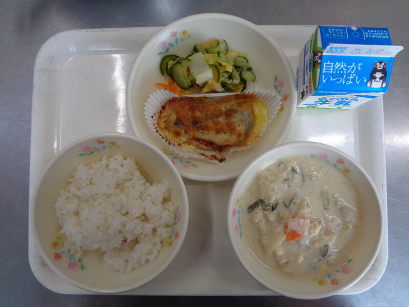 麦ご飯 牛乳 呉汁 魚のチーズマヨ焼き 白菜の甘酢和え
