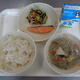 セルフおにぎり 牛乳 お野菜つみれ汁 照り焼きチキン 昆布和え