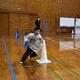 最初の種目は、新聞紙を胸に当てて走る「新聞紙リレー」です。スピードを緩めると新聞紙が落ちてしまうため、子どもたちは一生懸命に前を向いて駆け抜けていました。学年を問わず、仲間に声援を送る姿が印象的で、体育館の空気は一気に熱を帯びました。