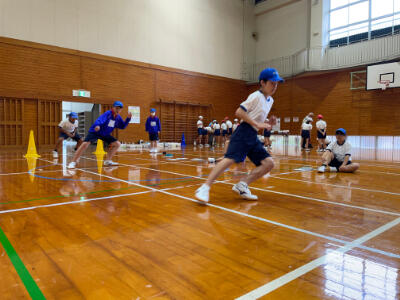 本時のテーマは、「自分に合ったピッチとストライドを考え、一定のペースを守って走る」こと。「効率的な走りのポイントを身に付けよう!」をめあてに、持久走の活動を通して、自分にとって最も良いペースと走り方を見つける学習に取り組みました。