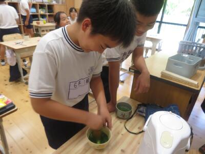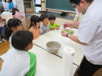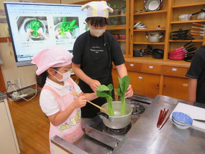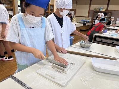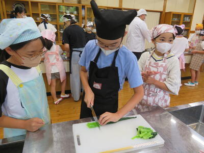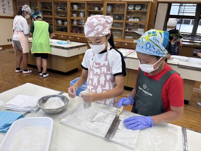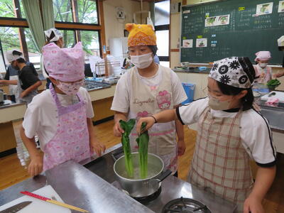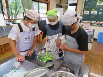 学校栄養職員の宮原先生の協力の下、慣れない手つきでしたが、おいしく仕上がりました。