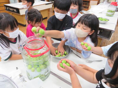 学校に持ち帰り、さっそく梅ジュースの仕込みにも取り組みました。
