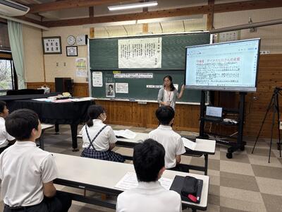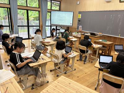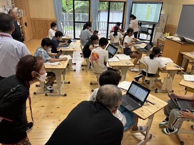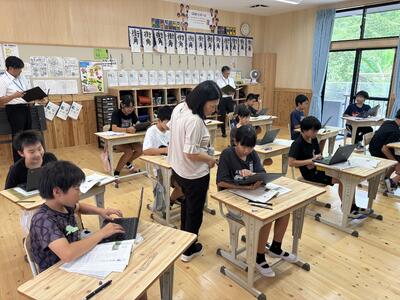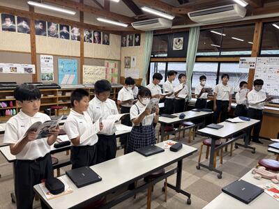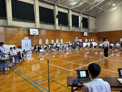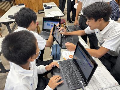 まさに、GIGAスクール構想で整備された一人一台端末を活用した、新しい学びのカタチを実感することができました!生徒は皆、日頃の学習の成果を発揮しようと、真剣に画面に向き合い、集中して取り組んでいました。