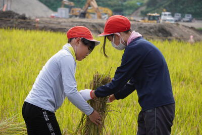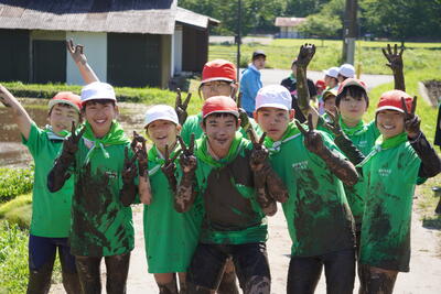 慣れないぬかるみの中で、足を取られ、泥だらけになりながら、みんなで楽しく活動できました。
