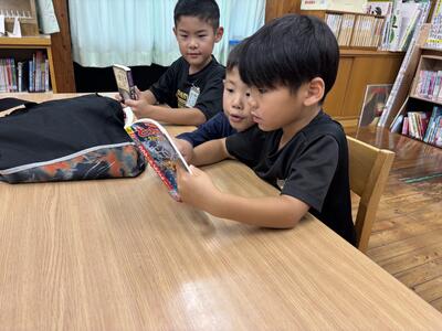 晴れている日のお昼休みはいつも運動場で遊びまわっている1年生ですが、こんな雨の日は教室でじっくり読書もいいですね。