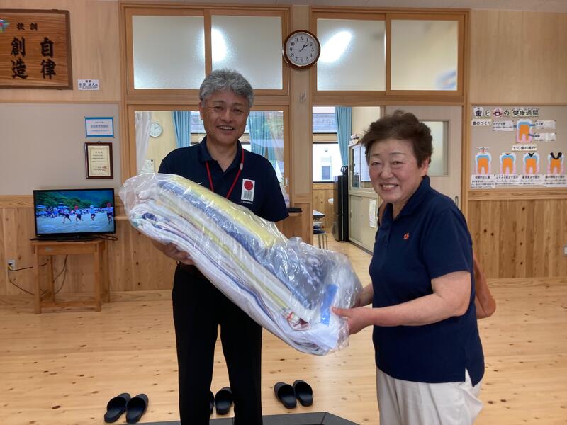 JA水上女性部のみなさんから、今年もたくさんの足ふきマットを寄贈していただきました。