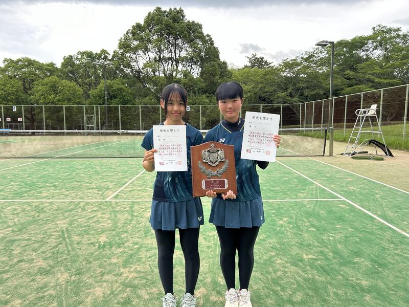 ソフトテニス女子個人の部で2連覇を果たした永石・福田ペア