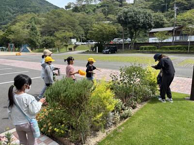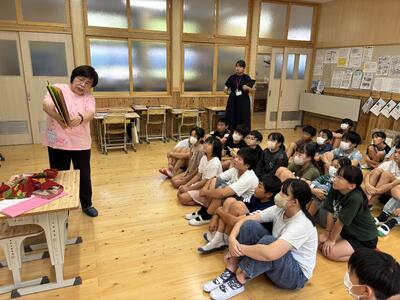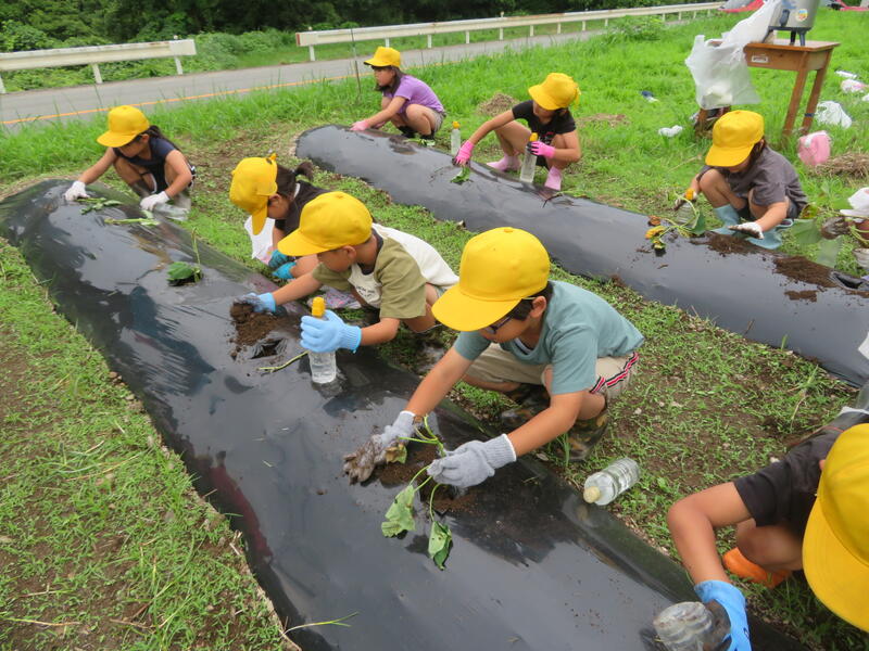この畑は地域の方からお借りした畑です。また、用務員の先生が、植え付け前から、草刈りをしたり耕したりしてくださいました。そして、地域の皆様に温かく見守っていただきました。そうした皆様のおかげで素晴らしい実りを得ることができました。心より感謝申し上げます。子どもたちにとって、地域の皆様の支えが、学びの大きな力となっていることを実感する一日となりました。