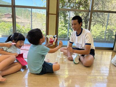 「明るく 楽しく 元気な 水上学園」の一コマです。