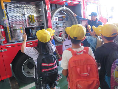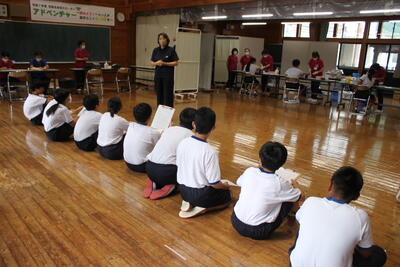 質疑応答の時間では、「どんな時にやりがいを感じますか?」「大変なことは何ですか?」など、たくさんの質問が飛び出しました。一つひとつ丁寧に答えてくださる署員の方々の真剣な眼差しに、子どもたちも「自分たちの町は自分たちで守る」という意識を高めたのではないでしょうか。