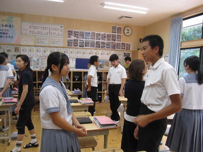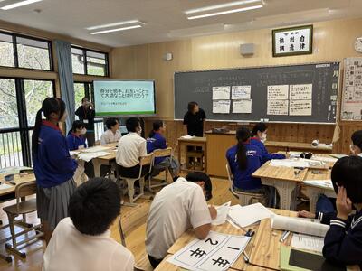 「もっと学校生活を楽しくするには?」「どうすればみんな元気なあいさつができる?」といった問いに対し、生徒一人ひとりが真剣に考え、様々な提案が出されました。例えば、「みんなが交流できるレクリエーションを増やしてほしい」「もっと元気なあいさつができるように高学年が見本を示すべきだ」など、具体的なアイデアがたくさん発表され、活発な議論が展開されました。