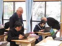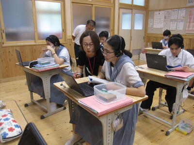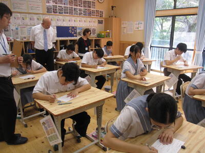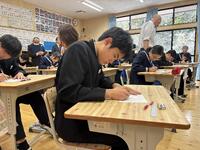PBTとは、紙の問題用紙と解答用紙を使って、鉛筆などで記入していく、お馴染みのテスト方式のことです。国語の聞き取り問題はラジカセやパソコンを活用しましたが、それ以外は紙と向き合うスタイルです。後期課程とはまた違った緊張感の中、最後まで粘り強く問題に取り組んでいました。