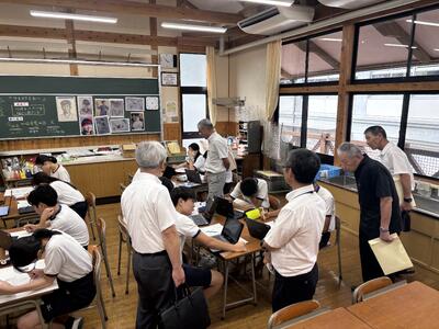 教育委員会からの委任状交付の後は、各教室にて授業参観をしていただき、意欲的に学習する児童生徒のようすや、熱心に学習指導に取り組む先生方の姿を観ていただきました。